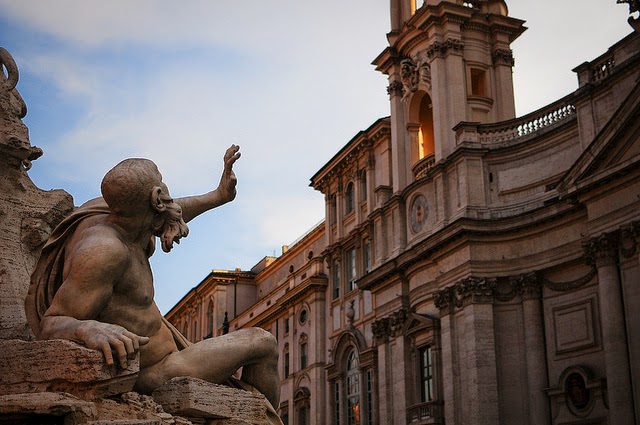 In Piazza Navona, fu assegnata a Borromini una chiesa e a Bernini la Fontana dei Quattro Fiumi (Danubio, Gange, Rio della Plata e Nilo). Egli decise di Rappresentare il Rio della Plata in una posizione preoccupata di un possibile crollo della chiesa, mentre il Nilo si copre la testa con un velo per non guardare la facciata della chiesa.